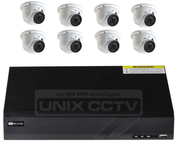 COMES WITH 8 IP Power C5232D | 5MP Outdoor IR Turret Network Camera, H.265, IP67, Metal Body, Fixed Lens, 100ft (30m) IR Range, DC 12V or PoE